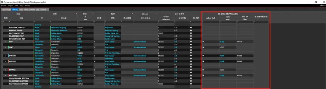 新增基于Cross-Section的阻抗约束集,允许在Cross-Section编辑器中直接输入单端和差分阻抗要求,并生成物理约束集。