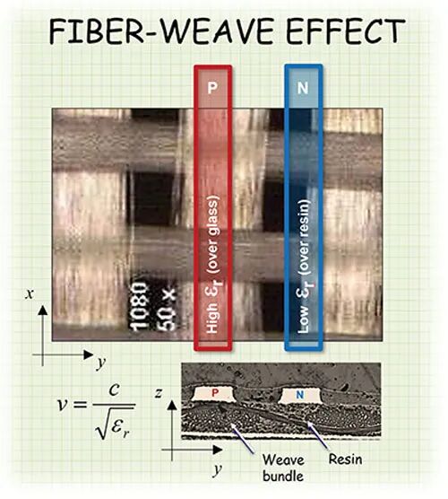 使用编织更紧密的介质材料可以解决这个阻抗不一致的问题,但成本高昂。另一种方法是放弃纯水平和垂直布线,改用斜线布线,以减少通过玻纤编织空隙布线的可能性,但这种方法耗时费力,而且无法验证布线情况。